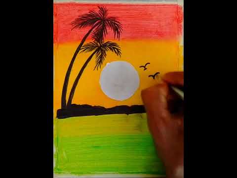 How to paint beautiful scenery with poster color | easy sunset scenery drawing with watercolorhello! In this video i show how to draw a simple sunset scenery. Colors of an ocean s.